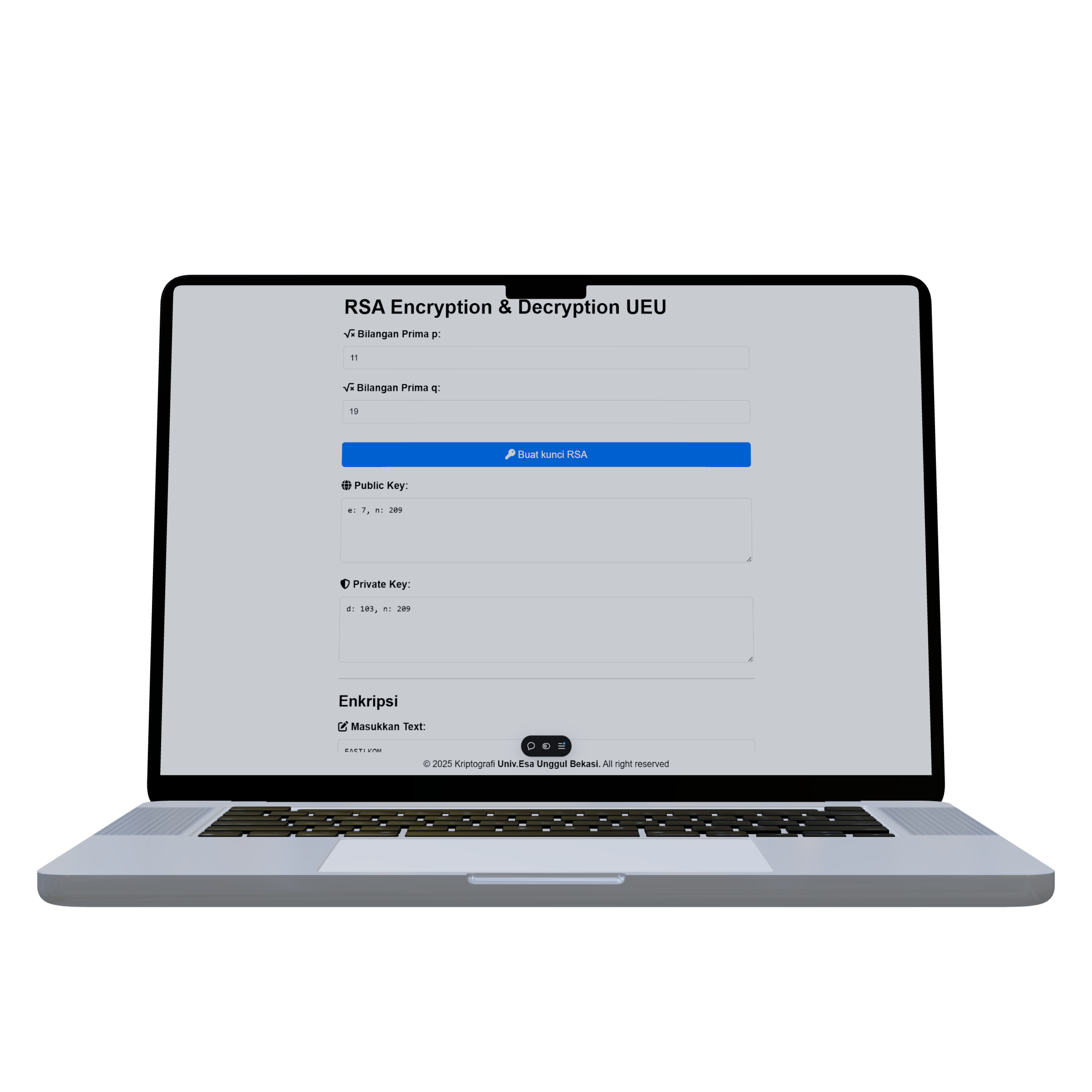 Untuk dekripsi, masukkan teks terenkripsi dan private key anda pada kolom yang sesuai, kemudian klik tombol "Dekripsi" untuk mendapatkan teks asli.
